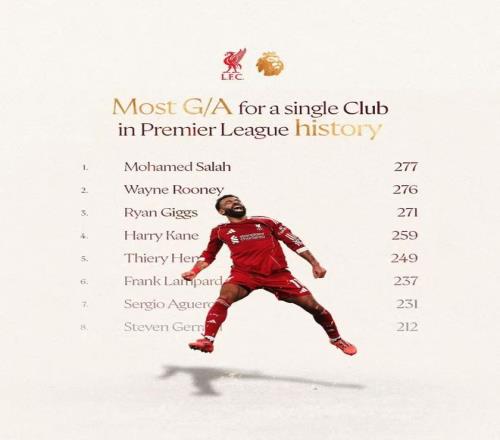 萨拉赫助攻埃基蒂克头球破门后,超越鲁尼,成为了英超史上为单一俱乐部创造进球最多的第一人!
