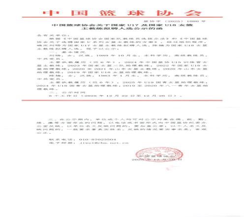 中国篮协公示国青主教练拟聘人选
