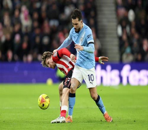 落后阿森纳4分!曼城00客平桑德兰B席进球被吹萨维尼奥两失良机