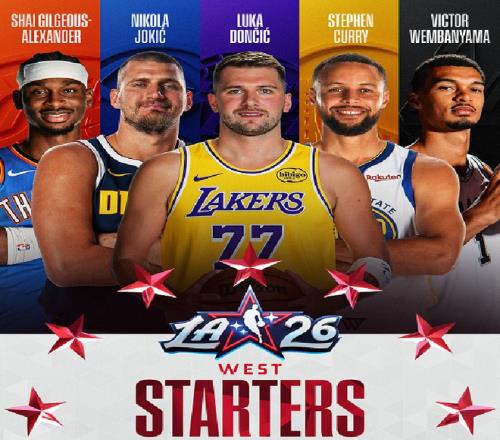 西部:东契奇+约基奇+亚历山大+库里+文班亚马;